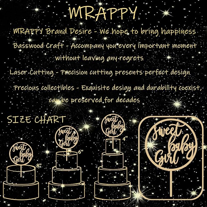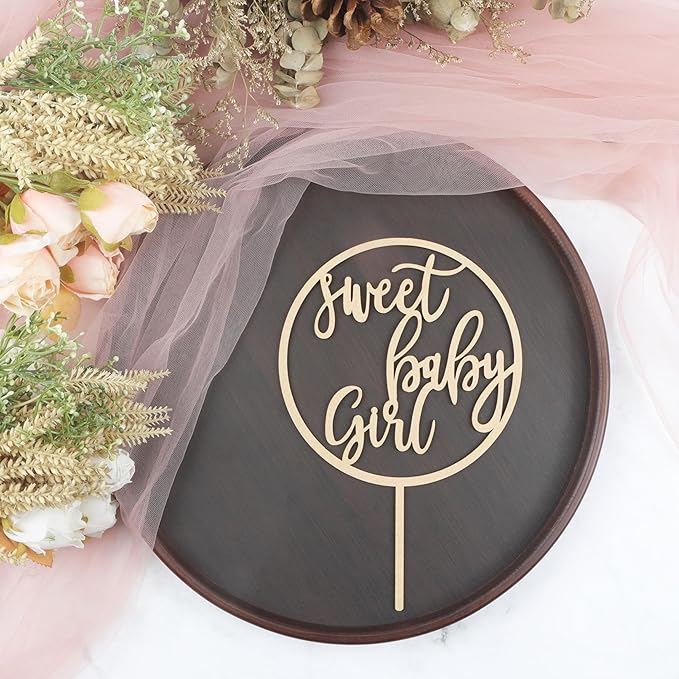 - SWEET BABY GIRL WOOD CAKE TOPPER - Our flagship design sweet baby girl cake topper uses a wooden structure in a rustic style to reveal the baby's important moments. This girl cake decoration is an important supplement to the cake, perfectly simplicity and elegance into the birthday party. The full sense of luxury and festivity allows everyone to remember the baby shower party without leaving any regrets