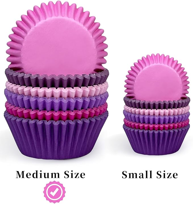 qiqee 300 Counts Cupcake Liners Cupcake Cups Food Grade 6 Solid Pink Purple Colors Cupcake Papers Muffin Baking Cups Cupcake Wrappers (Standard Size)