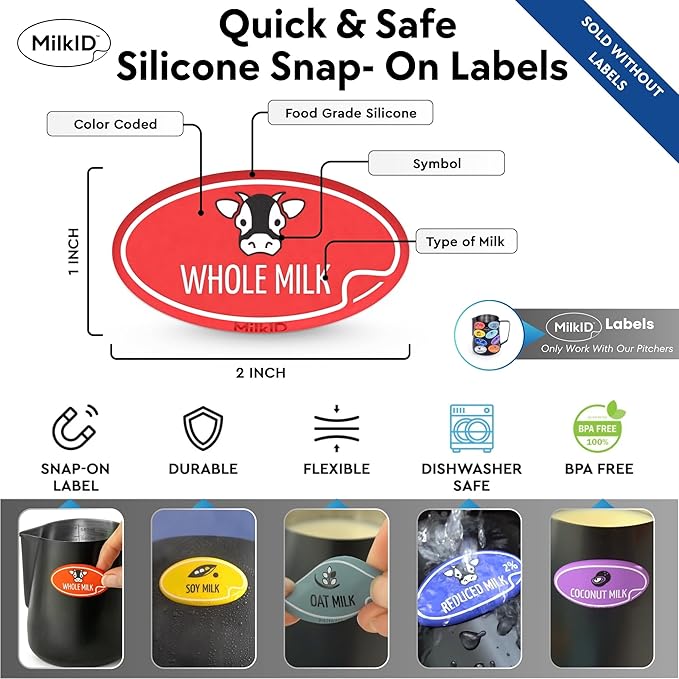 - *COMPATIBLE WITH MILKID LABELING SYSTEM*: Designed exclusively to work with the MilkID labelling system, our pitcher ensures accurate milk identification, eliminating the risk of cross-contamination.
