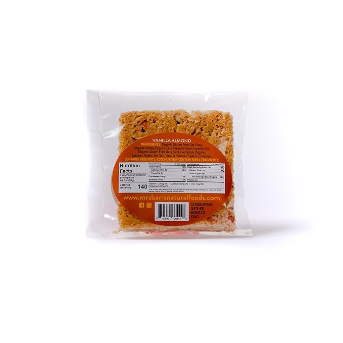 Mrs. Barr’s Natural Foods Granola Bars | Vanilla Almond | Certified Organic Gluten Free Oats | Soft Texture | Small Batch | Gourmet Quality | Real Ingredients | 2 Ounces (6 Pack)