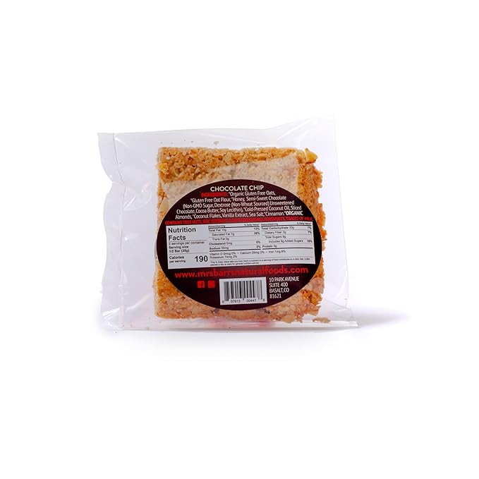 Mrs. Barr’s Natural Foods Granola Bars | Chocolate Chip | Certified Organic Gluten Free Oats | Soft Texture | Small Batch | Gourmet Quality | Real Ingredients | 2.5 Ounces (6 Pack)
