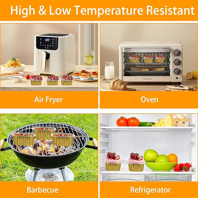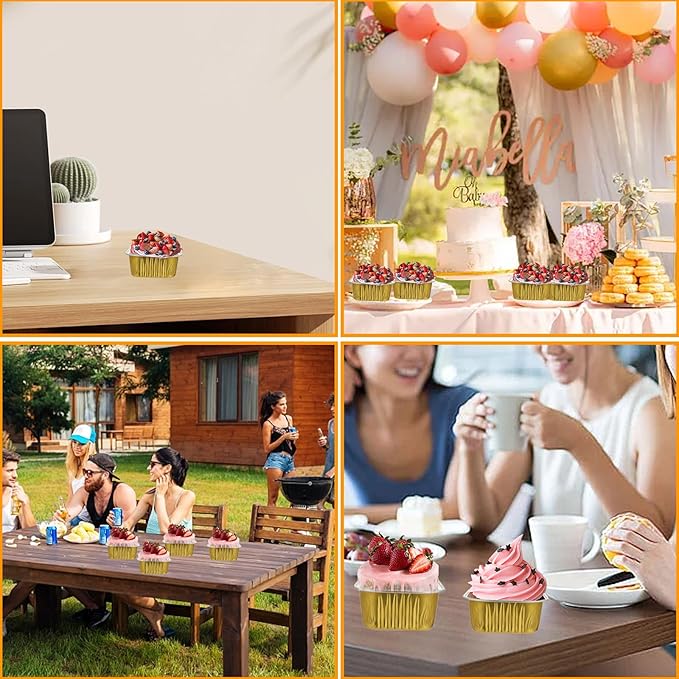 - Premium Material: Made of food grade aluminum foil, the cake pans are sturdy, odorless and safe to store cupcakes. Each baking cup can withstand high and low temperature from -40℃ to 280℃, suitable for freezer, microwave, oven and so on