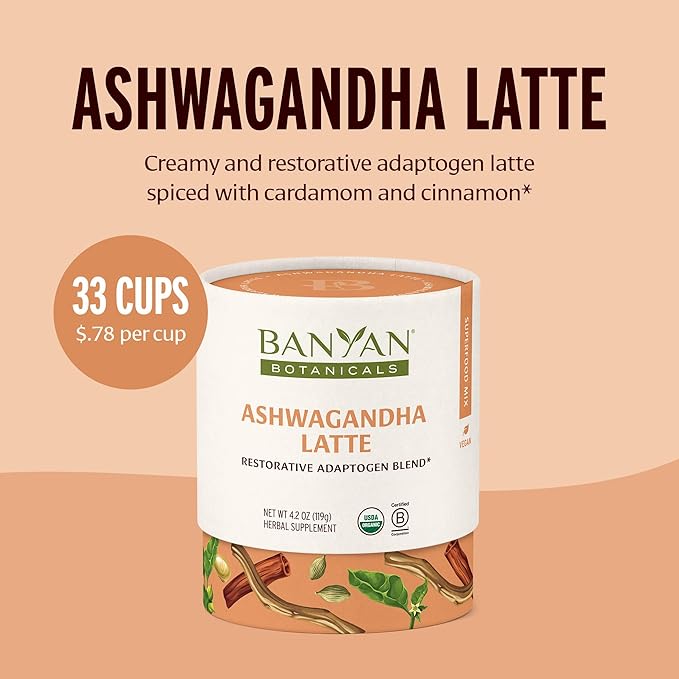 Banyan Botanicals Ashwagandha Latte – Caffeine-Free Organic Herbal Latte Mix – Instant Herbal Adaptogen Drink for Energy, Relaxation, and Nourishment* – 4.2 oz – Non-GMO Sustainably Sourced Vegan