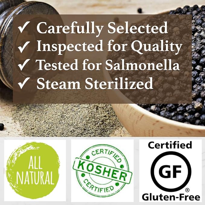 - ✔️PREMIUM GRADE QUALITY: All Goods black pepper corns, 💯gluten free & kosher verified, no preservatives or artificial flavors added, whole black pepper fresh for refill your grinders. The best way to spice up your meals.
