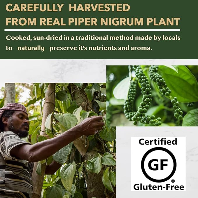 - ✔️100% ALL NATURAL: All Goods whole pepper black are selected from real piper nigrum plant & carefully harvested in kerala (INDIA), cooked, sun-dried in a traditional method made by locals to naturally preserve whole peppercorns nutrients & aroma.
