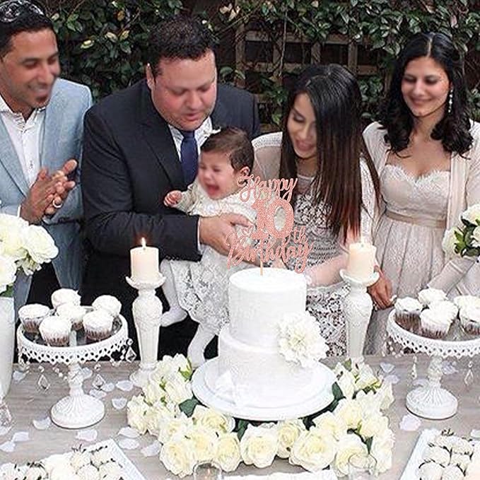 1 PCS Happy 10th Birthday Cake Topper Glitter Cheers to 10 Years Birthday Cake Pick Ten 10 Fabulous Cake Decoration for Happy 10th Birthday Anniversary Theme Party Decorations Supplies Rose Gold