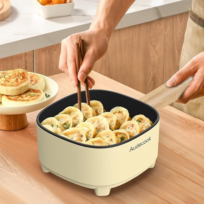 - Portable and Stable - Audecook Mini Hot Pot Cooker is perfect for RV, travel, dormitories, apartments, hotels and camping. The small size and light weight make it very convenient to carry around, and its four-leg non-slip design and pot body balance design can effectively prevent slipping and tipping.