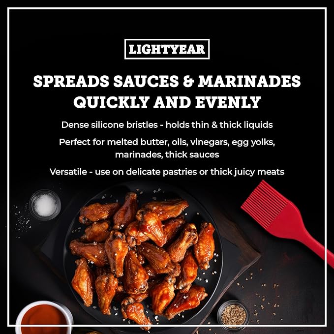 - [ SPREADS SAUCES AND MARINADES QUICKLY AND EVENLY ] Lightyear’s dense silicone bristles absorb both thick and thin liquids for more effective basting. This means you get an even spread of your marinade, ensuring that every inch of your food is infused with flavour. Perfect for melted butter, oils, vinegars, egg yolks, and juicy meat marinade.