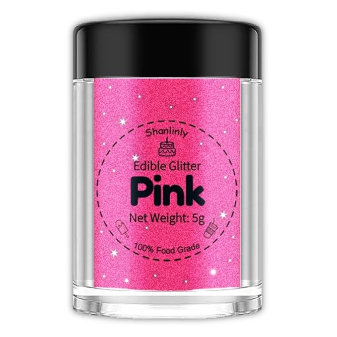 Shanlinly Pink Edible Glitter for Cakes Drinks - Food Grade 5g Shimmer Luster Glitter Dust Edible Glimmer Powders for Strawberries, Sprinkle on Sparkle, Chocolate, Cookie, Cupcake, Cocktail, Vegan