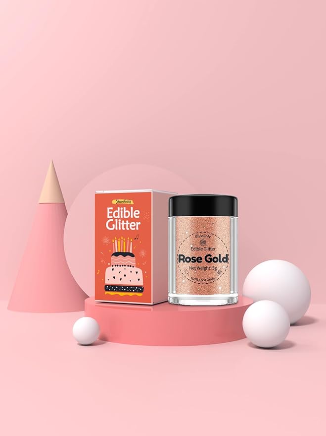 Shanlinly Rose Gold Edible Glitter for Cake Drinks - Food Grade 5g Shimmer Luster Glitter Dust Edible Glimmer Powder for Strawberries, Sprinkle on Sparkle, Chocolate, Cookie, Cupcake, Cocktail, Vegan