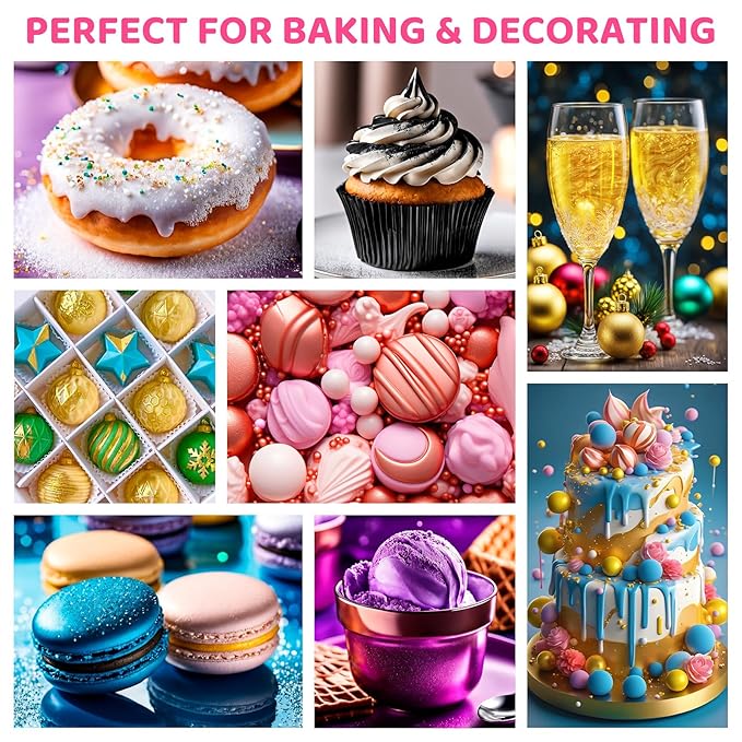 - Wide Application in Bakery and Beverage -- The edible luster dust is nice for cake, chocolate, fondant, candy, cookies, cupcake and more. And they are also used in various drinks, cocktails, vodka, beer etc. Please enjoy the fun of DIY desserts and drinks. Perfect for you to have fun decorating desserts for Valentine's Day, Memorial Day, birthdays, Easter, Christmas, Halloween and Thanksgiving!
