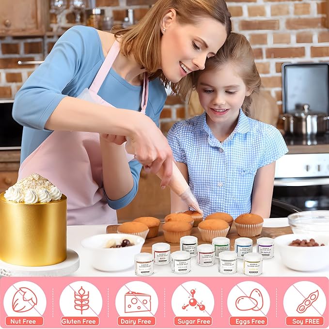 - Safe & Edible Luster Dust Set -- The edible luster dust adopt food grade ingredients , it's fat free, GMO free, gluten free, dairy free, nut free, non toxic and edible, no flavor. won't change the taste of your recipe. Vegetarians can eat it without worrying