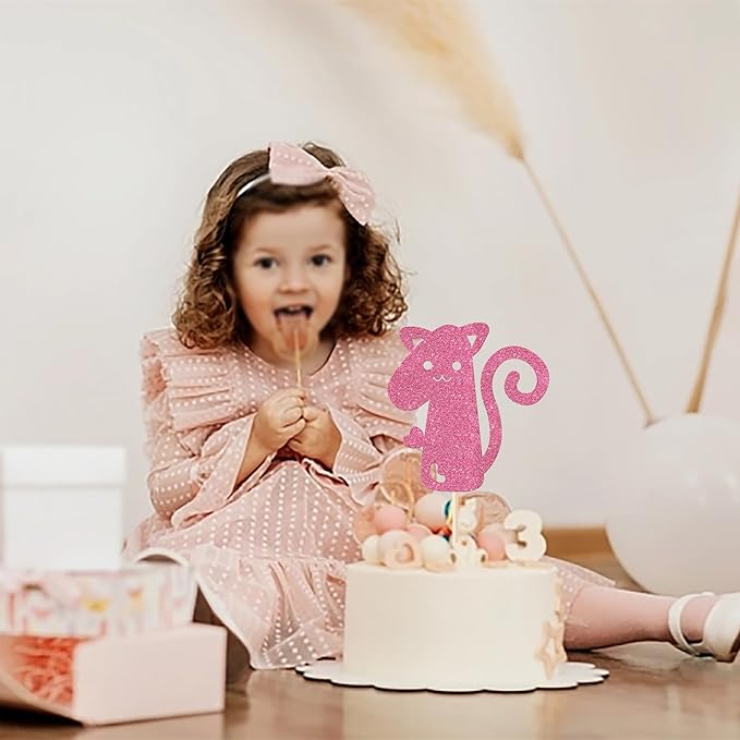 1 Pack Cat Cake Topper 1st Birthday Cake Pick Glitter Cute Pet Cat Cake Decoration for Baby Shower Kids First Birthday Wedding Party Cake Decorations Supplies Pink