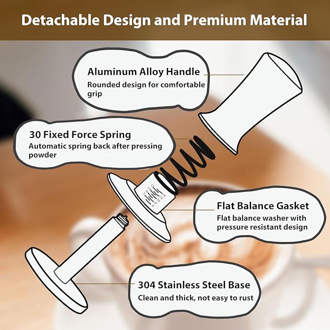 - Ergonomic Design: Better than traditional espresso tampers, the improved design adds springs inside for easier tamping and automatic rebound