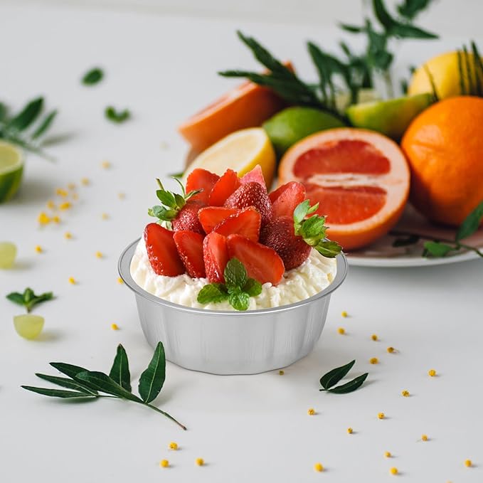 Beasea Ramekins with Lids, 8oz 100 Pack Disposable Aluminum Cups for Baking, Silver Aluminum Foil Creme Brulee Muffin Cupcake Baking Tin Mini Pudding Containers for Party Wedding Birthday