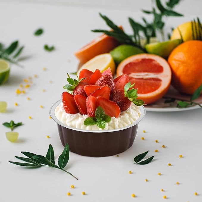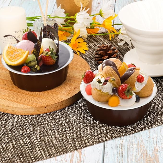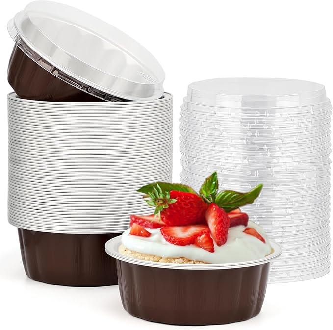Beasea 8oz Disposable Ramekins, 50 Pack Aluminum Foil Cups with Lids, Baking Ramekin Cup Souffle Cup Muffin Cupcake Baking Cup Mini Pudding Cups for Party Wedding Birthday - Coffee Brown