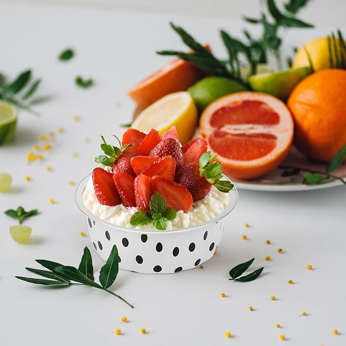 Beasea Disposable Ramekins with Lids, 8oz 50 Pack Black Dot in White Aluminum Foil Cups Disposable Creme Brulee Muffin Cupcake Baking Cup Mini Pudding Cups for Party Wedding Birthday