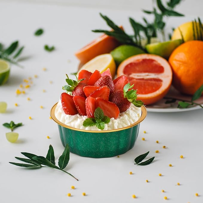 Beasea Disposable Ramekins with Lids, 8oz 50 Pack Aluminum Cups for Baking Jade Green, Aluminum Foil Cups Creme Brulee Muffin Cupcake Baking Cup Mini Pudding Cups for Party Wedding Birthday