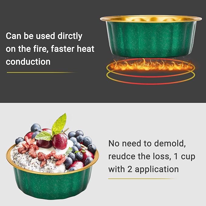 - 【Multi-function】1 aluminum cup with 2 application, it is a baking mold and also a beautiful packing, do not need to demold and very convenient to serve.