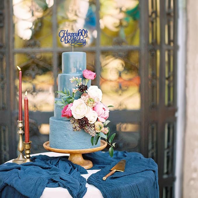 1 Pack Happy 60th Birthday Cake Topper Blue Glitter Number 60 Sixty Years Old Birthday Cake Pick Decoration For 60th Birthday Celebrating Anniversary Party Supplies