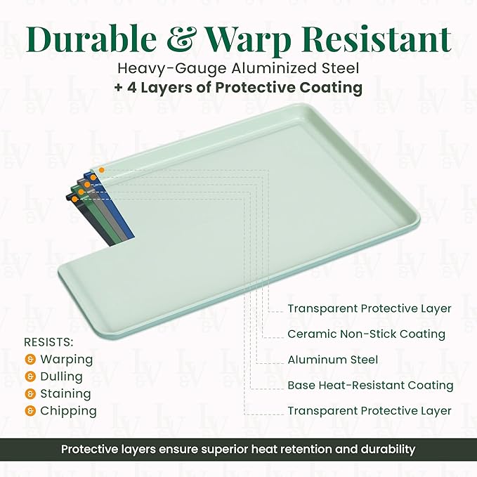 - Durable 4-Layer Construction: Made from heavy-gauge aluminized steel with five protective layers, these baking essentials resist warping and endures repeated use, delivering reliable performance and lasting quality for years of baking enjoyment.