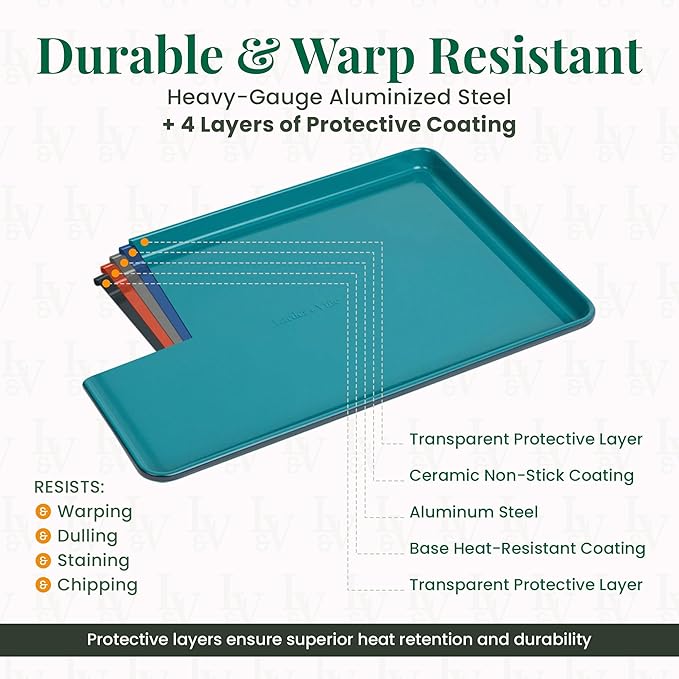 - Durable 4-Layer Construction: Made from heavy-gauge aluminized steel with five protective layers, these baking essentials resist warping and endures repeated use, delivering reliable performance and lasting quality for years of baking enjoyment.