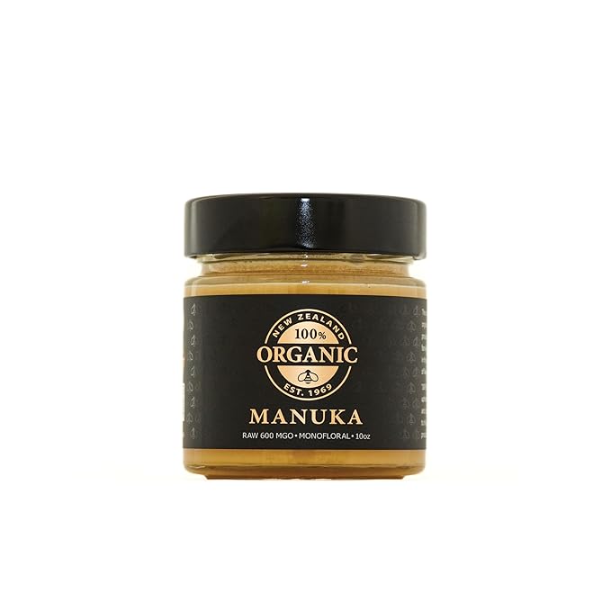 100 ORGANIC NEW ZEALAND Raw Manuka Honey 600MGO 10oz glass jar, Hive to Hand, Superfood, independently certified, Non-GMO