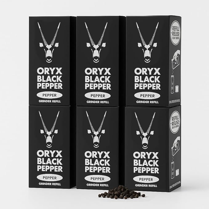 - 6 Pack: This convenient 6-pack is ideal for ensuring a long-lasting supply of Oryx Black Peppercorn.