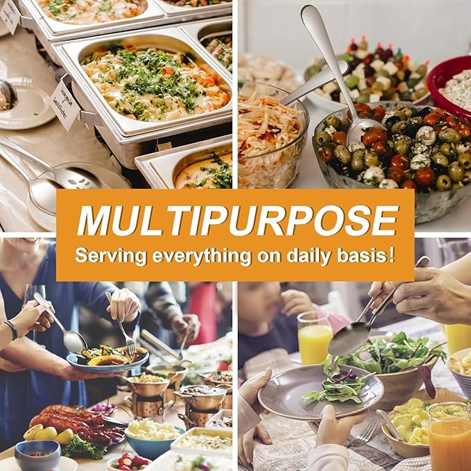 - 【Multipurpose】The classic and elegant design makes this serving spoon set perfect for most dining occasions, providing you with a cozy and enjoyable dining atmosphere. BEWOS serving utensils set is suitable for buffet, catering, banquet, dinner party, restaurant, wedding,birthday party and so on