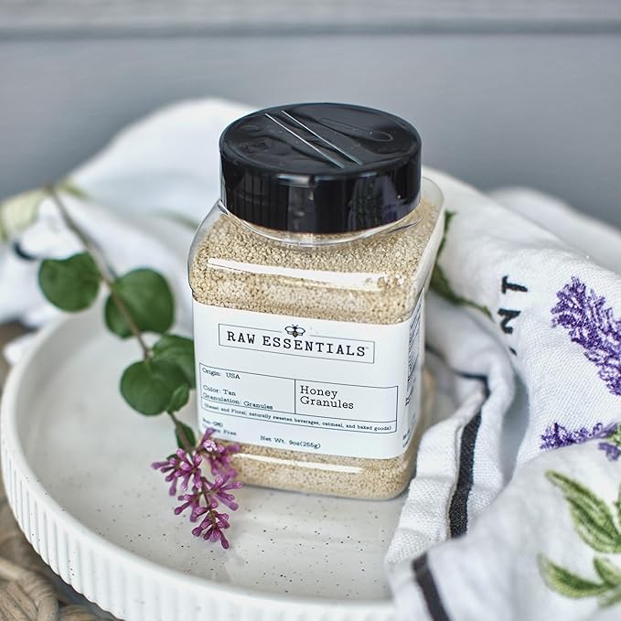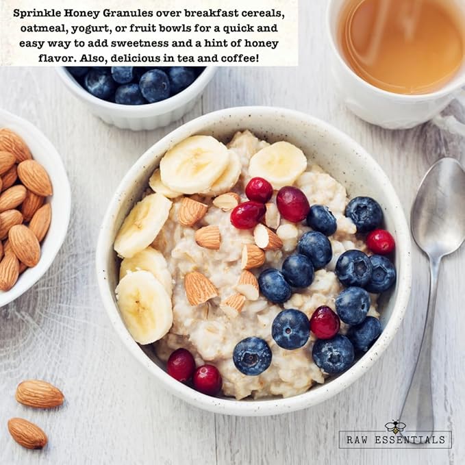 Raw Essentials Honey Granules – Natural Sweetness for Oatmeal, Yogurt, Beverages, and Desserts – Non-GMO and Gluten-Free – 9 Ounce Container