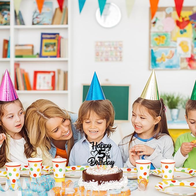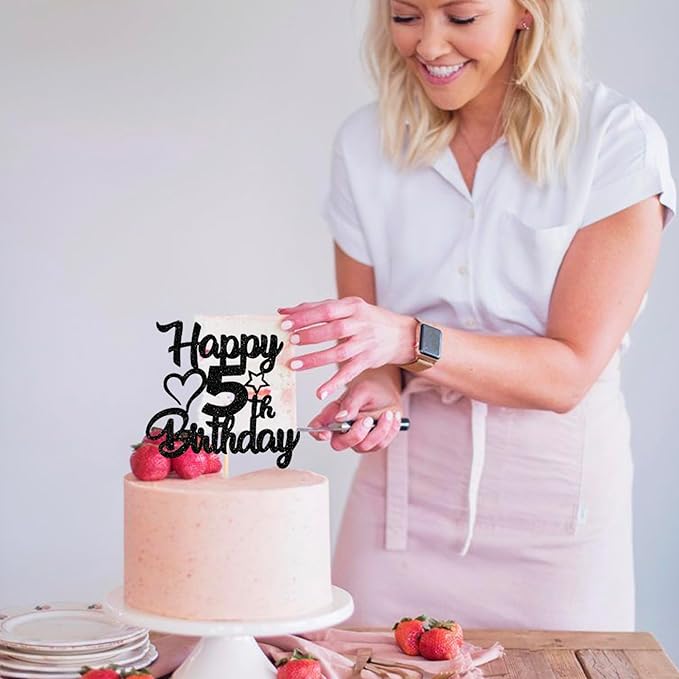YCTHUNFISH 1 Pack Happy 5th Birthday Cake Topper Glitter Heart Star 5 Fabulous Cake Pick Birthday Sign Cake Decorations for Children 5th Birthday Theme Party Supplies Black