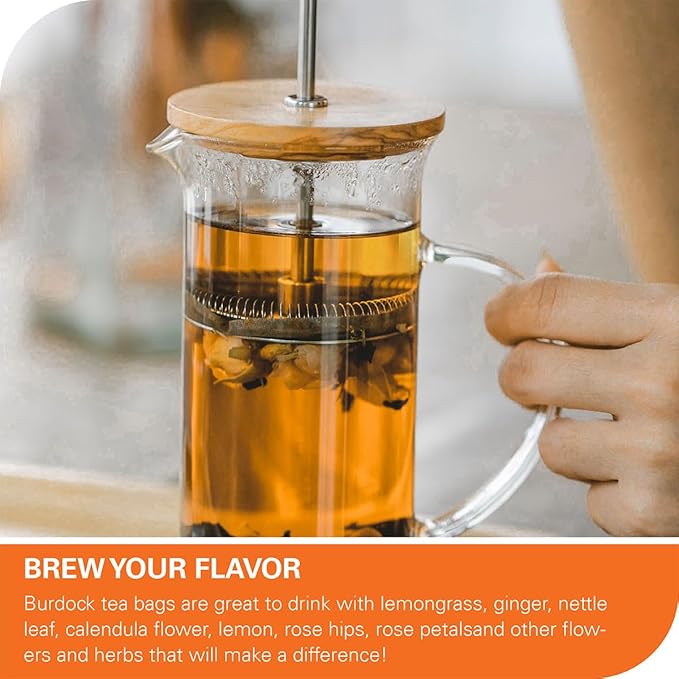 - 【Eco-Conscious Design】100 burdock root tea bags (unbleached and compostable, no staples, string, bags, or extra waste) packed in a resealable kraft paper bag to keep them fresh.