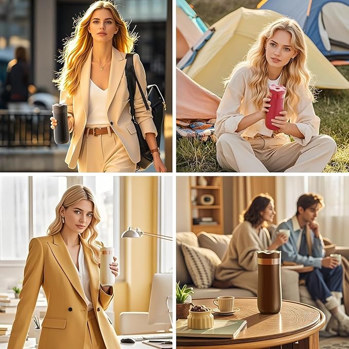 - High Quality Material: 304 Stainless steel,made of vacuum-sealed, double-wall construction, this stainless steel travel mug keeps beverages hot or cold for several hours.Heat preservation: Hot liquids stay warm for 8 hours/cold liquids stay chilled for 12 hours.