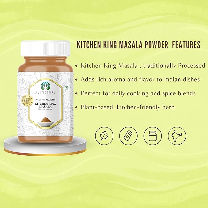 - AYURVEDASHREE Kitchen King Masala is a blend of all essential spices used in Indian recipes like cumin powder, cinnamon, cardamom, cloves, coriander seeds, and more. The blend adds a delightful aroma to your recipes, making your kitchen a fragrant and inviting place.