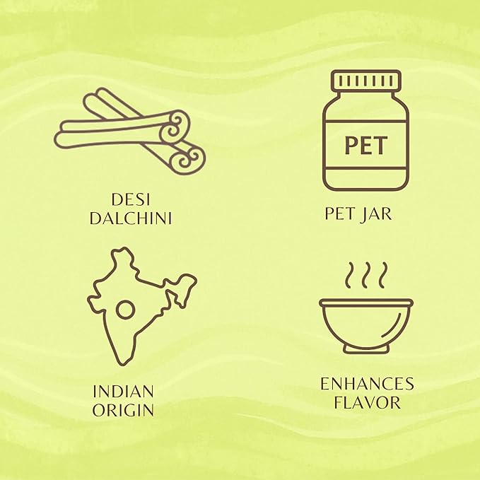 AYURVEDASHREE Cinnamon (Desi Dalchini) 60gm PET Jar | All Natural | Vegan | No Colors | NON-GMO | Cinamon Bark | Dalchini Chhaal
