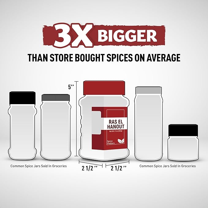 - EASY TO USE & PERFECT GIFT FOR SPICE LOVERS: Enjoy the bold flavors of our Ras Al Hanout spice. Comes in a sealed PET bottle with a handy shaker top, ensuring ease of use and storage. Its practical design makes seasoning simple and keeps the flavors fresh
