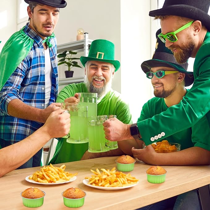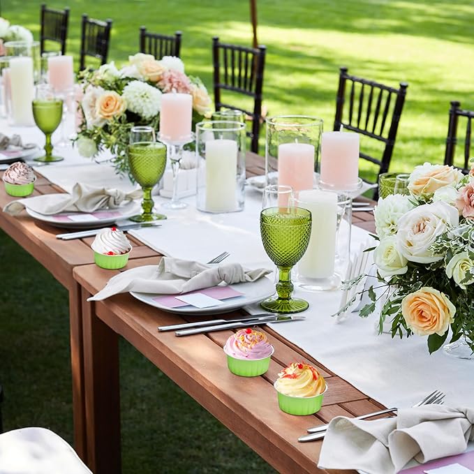 Gejoy 400 Pcs Aluminum Foil Baking Cups with Lids 5 oz Disposable Ramekins Mini Cake Pans Creme Brulee Cupcake Liners Muffin Tins Flan Mold Dessert Container for Wedding(Green,Classic)