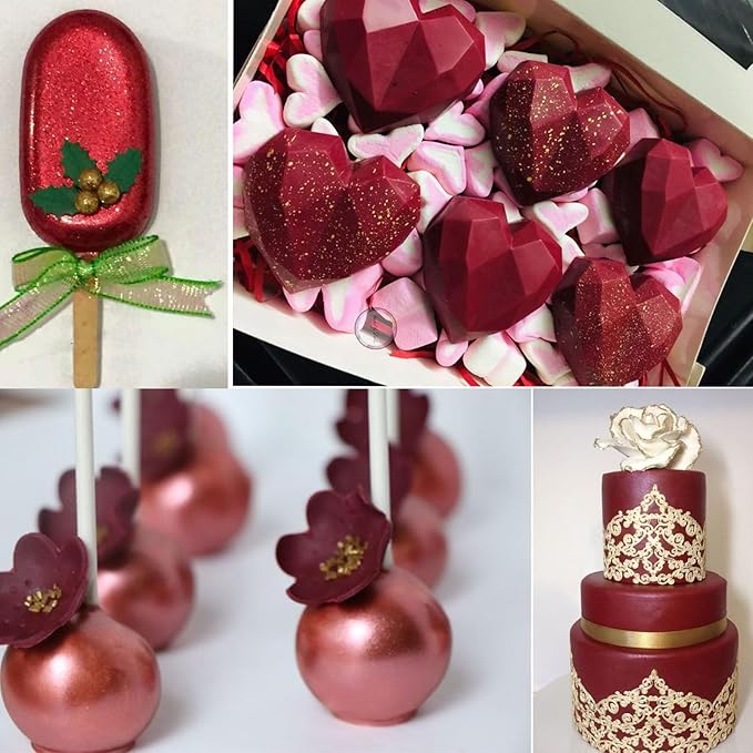 - 【High-quality Luster Edible Dust Powder】Edible burgundy luster dust is made of food grade mica-based pearlescent pigment imported from German, Approved by MSDS, Kosher, Vegan and etc food safety certification, kids and adults can food safely, Dairy-free, gluten-free, allergen-free and safety ingredients!