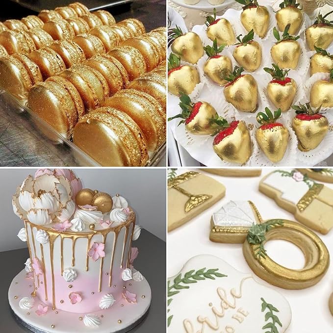 - Used by Professionals & Beginner Friendly - A top choice of professional bakers and home chefs alike, this food grade gold edible glitter luster shimmering dust is ideal for decorating CAKES, CUPCAKES, COOKIES, chocolates, Cocktail glitter for drinks, and DESSERTS. Add a pop of shimmer to Chocolate- covered strawberries, give your Champagne toast a little extra sparkle, and make magical with your kids!