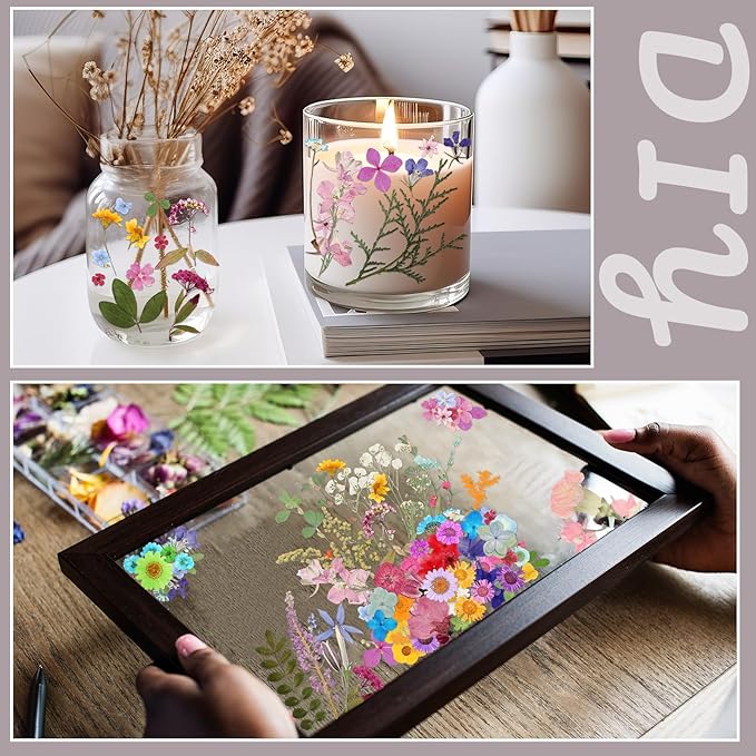 - Different Usages: natural tiny pressed flowers for resin can be widely applied for nail, resin molds, Christmas gift, DIY jewelry design, resin phone case, note card, stationery, wedding invitations, envelopes, stained glass, bookmarks, candle makers, soap making, table decorations, Papermaking, furniture and wood workings