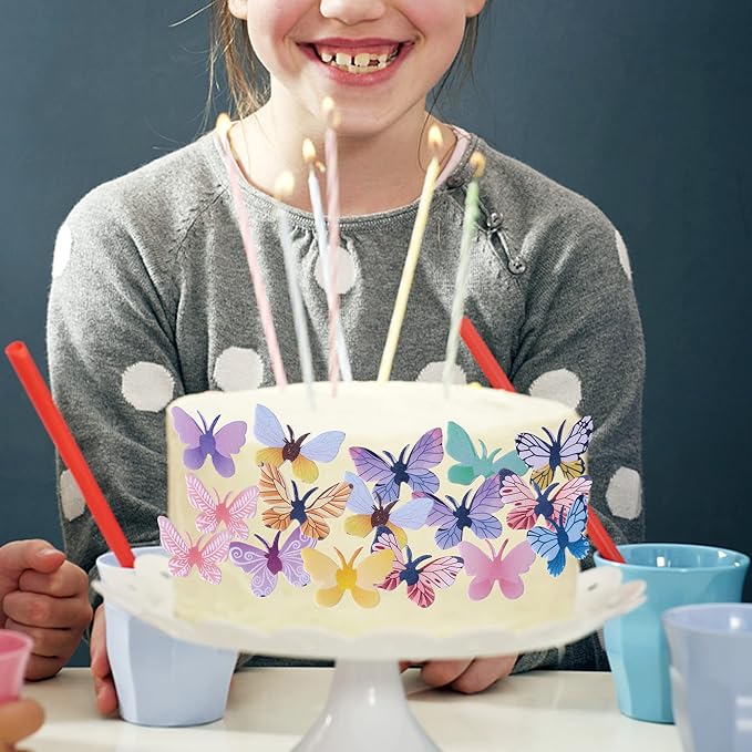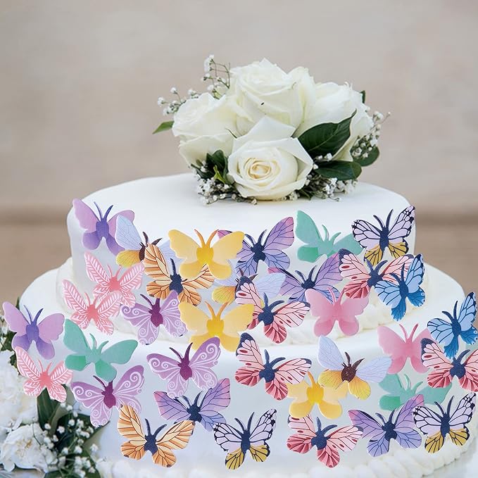 - Premium Material: These butterfly cupcake toppers are made of wafer rice paper, it is completely edible but not delicious, They are virtually tasteless, not sweet at all and are sugar free, very safe to put them on cakes, cupcakes, ice cream, fruits, pie, dessert, cheese or any dish and food appetizer you want to decorate.