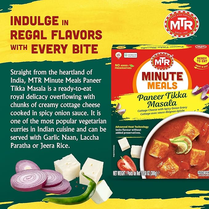 - AUTHENTIC INDIAN TASTE: Immerse yourself in the contemporary authenticity of MTR, blending traditional Indian recipes with modern culinary approaches. Experience the rich, aromatic journey of traditional Indian taste with MTR Paneer Tikka Masala, featuring cottage cheese with spicy onion gravy—a culinary adventure to India from the comfort of your home.
