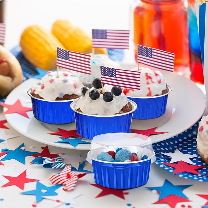 - Delicate and Practical: the aluminum ramekins with lids are suitable for use as small dessert cups; They can hold cupcakes, mini cheesecakes, creme brulee, puddings, fruit pies, muffins, chocolates, cookies, yogurt, fruit, ice cream and more