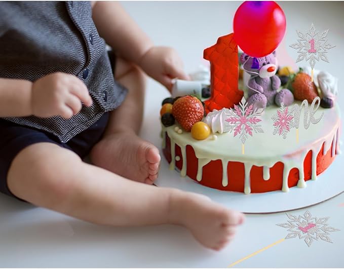 - ⛄【Attractive cake decorations】 These snowflake 1st birthday cupcake toppers can decorate cakes, cupcakes, ice cream, fruit, desserts, cookies and cheese and much more. Your food will look even more delicious and your party will be even more fun!