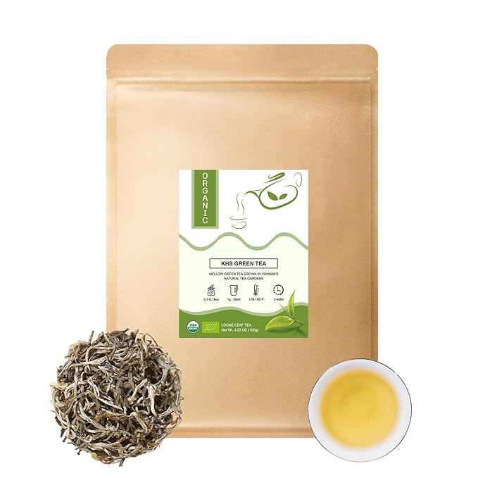 KHS Organic Green Tea Leaves, 3.53 Oz Green Tea Loose Leaf from High Altitude, Clean Aroma Chinese Green Leaves with USDA Certified Perfect for Ice Tea or Hot Tea, 100% Natural, Non-GMO, Non-Gluten