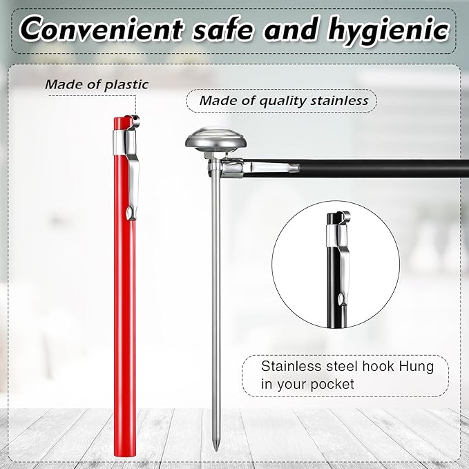 - Long Lasting and Quality: the cooking thermometer is made of stainless steel material with a plastic sleeve, reliable and long lasting, heat resistant and sturdy, not easy to break or rust, safe and quality, lightweight and portable, you can use it for a long time