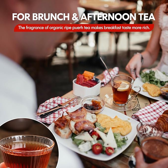 - CHARMING COLOR & AROMA --- The organic pu-erh loose tea leaves are in the form of short, thin strips. After brewing, the tea broth is reddish brown in color with a strong tea aroma. The taste is smooth and the thick tea flavor lingers in the mouth.