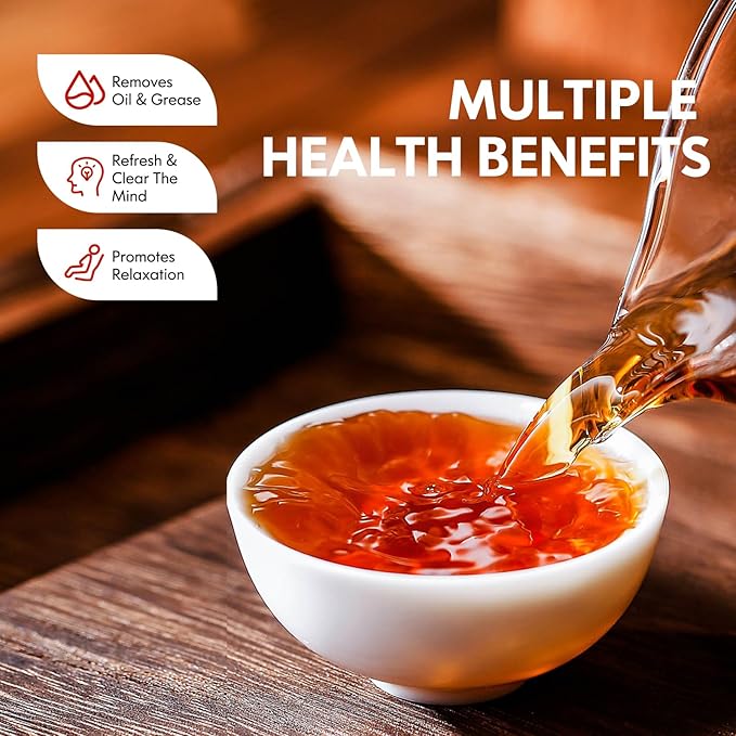 - VERSATILE & HEALTHY BENEFITS --- The organic pu erh tea loose leaf is rich in tea polyphenols, which naturally boost your energy levels and mental clarity. It also has health benefits by relieving greasiness and boosting metabolism.