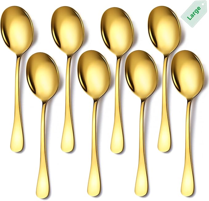 Stainless Steel Serving Spoons Set, 8pc, 10-Inch, Includes 8 Large Spoons, for Parties/Kitchen/Buffet/Catering, Dishwasher Safe, Gold