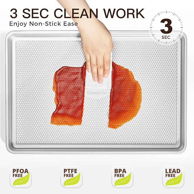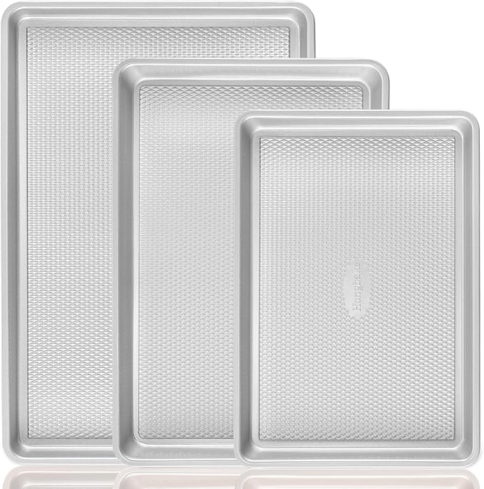 - INGENUITY DIAMOND TEXTURE - The cookie sheet pan set has a diamond texture on the base increases its non-stick properties and ensures even and quick heat airflow to the cookie, which makes the cookies consistently baked without any over or undercooked parts.